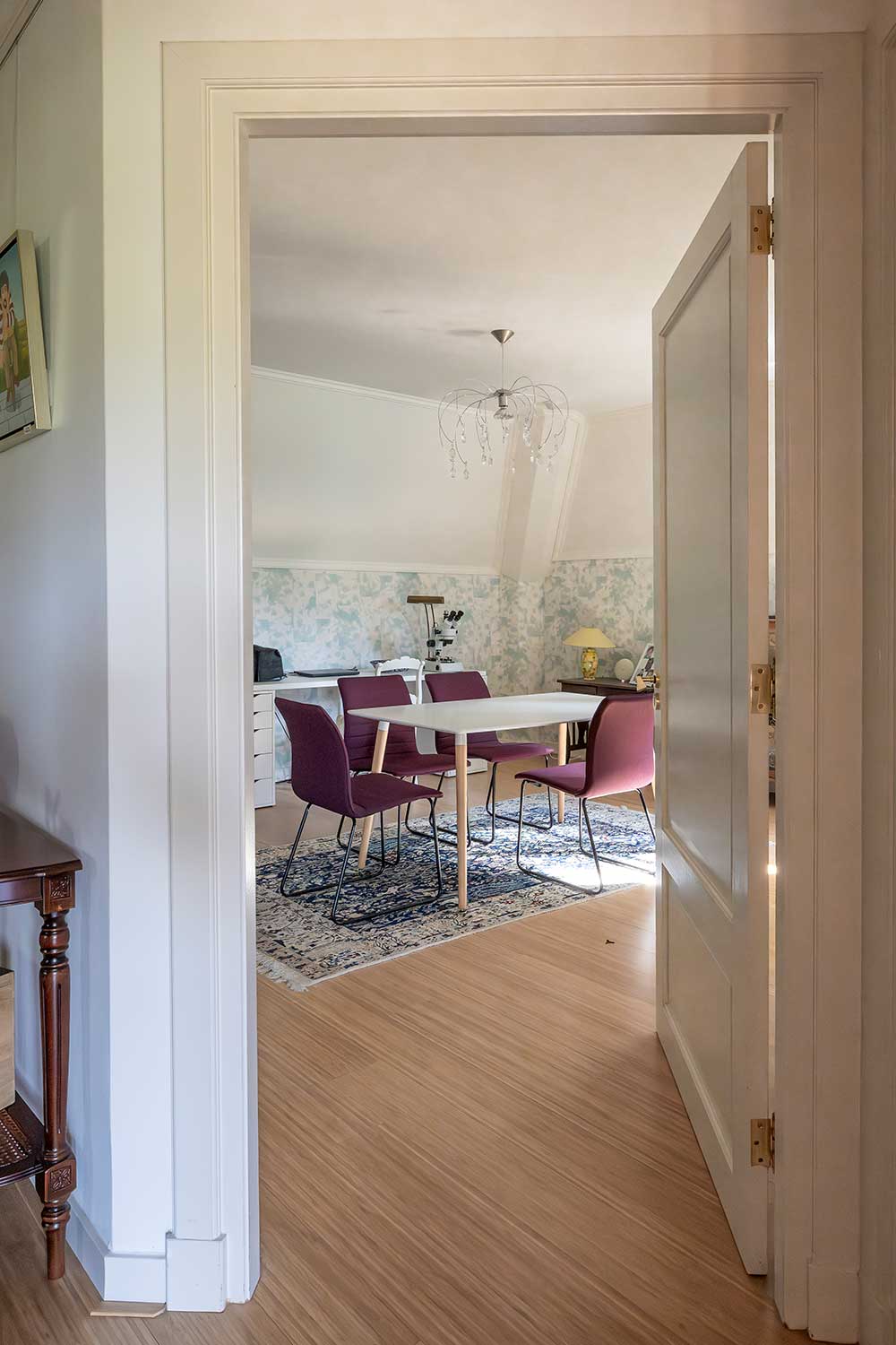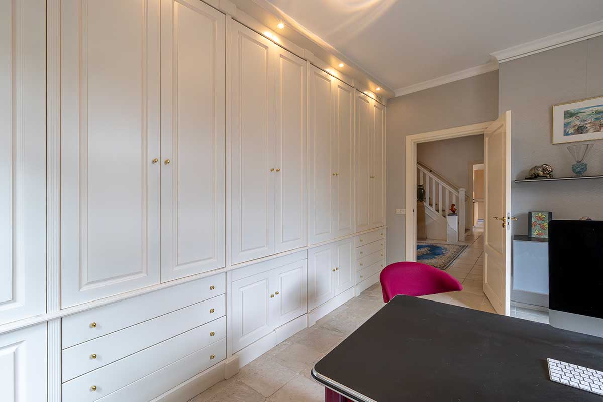 Vanuit de hal is er toegang tot de werkkamer met ingebouwde kasten: een perfecte plek om te werken of te studeren.