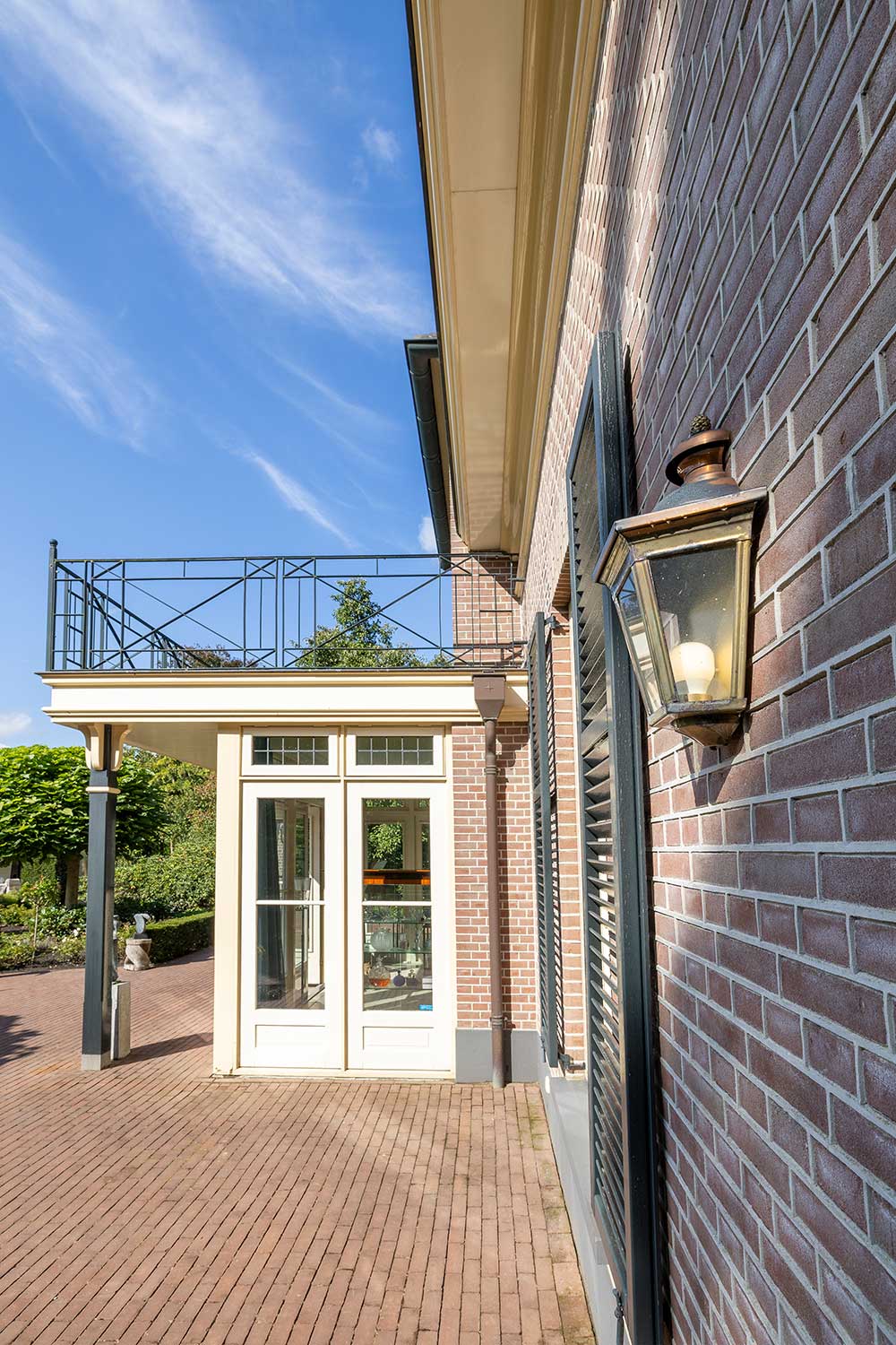 De elektronische poort brengt u op de cour aan de achterzijde van dit markante landhuis. De binnenplaats biedt ruime parkeergelegenheid en is voorzien van hoogwaardige bestrating.