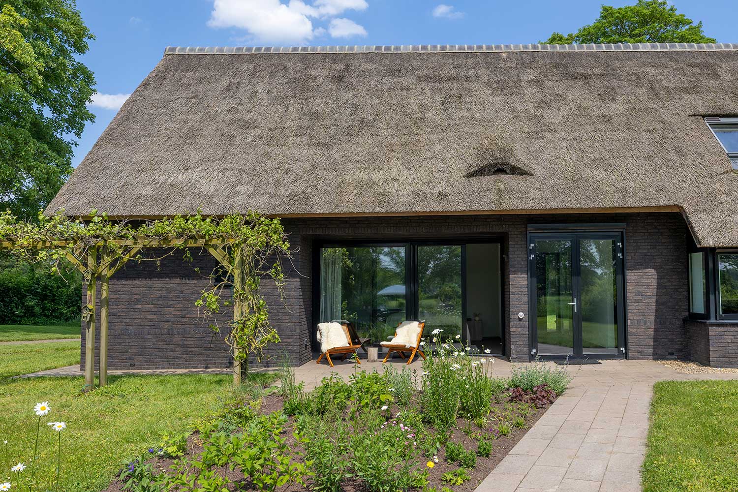 duurzame rietgedekte villa.