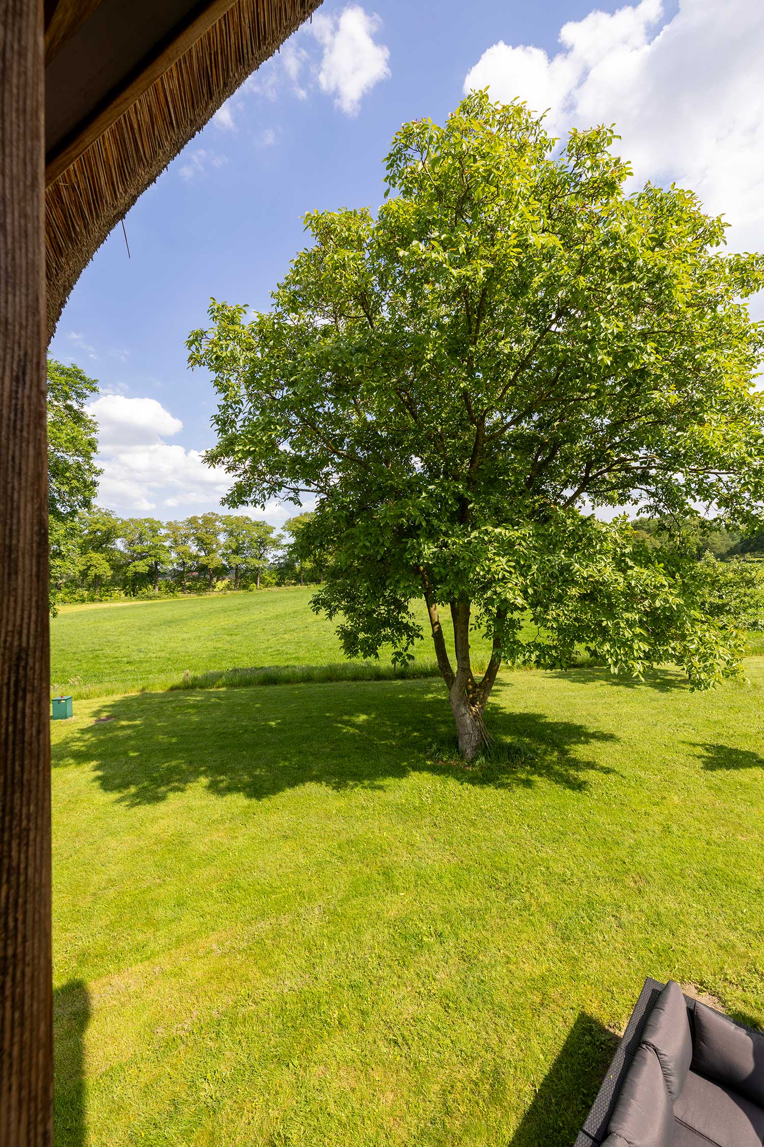 Zicht op de oude notenboom.