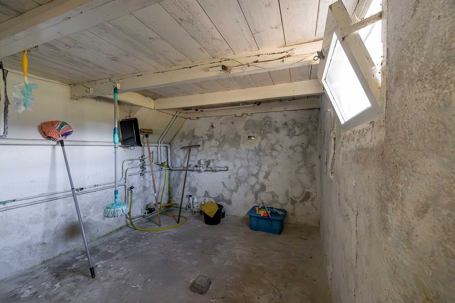 De kelder met kelderraampje is direct bereikbaar vanuit de keuken.